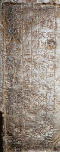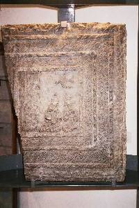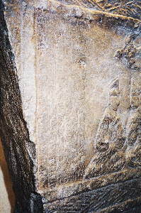 厚みは十センチぐらい。裏にはなにも無いし、切ったあとも無い凸凹した石肌である。側面にも模様は無い。ややクリーム色の石で、典型的な山東の彫刻様式である。薬研彫りではなく、両刃で彫ったような彫りあとだった。文字の面はかなり波打っていて、拓本をとると濃淡が激しくなるのはこのせいかと思った。文字の破損はむしろ少ないようだ。 この原石は北京歴史博物館あたりにあったような気がしていたので、「不思議だ、コピーにしてはよくできていすぎる」と思ったが、日本で文献(1)を調べたら所在不明。それなら、これがその原石にまちがいない。ブリュッセル訪碑記ということになった。ヨーロッパにある唯一の漢代石刻文字かもしれない。文字の無い画象石はあちこちに所蔵されているようだが、文字のあるものは欧米では珍しい。日本にも漢代の碑の原石は少なく、断碑が台東区立書道博物館に1点と、嘉平石経の断片が京都の藤井有鄰館と台東区立書道博物館にあるぐらいだろう。シモネ氏によると、ポール=シャバンヌのころに購入したものだそうだ。許可をえて、写真をとった。
