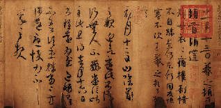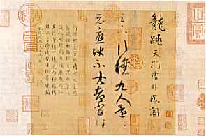 金の章宗皇帝の所蔵品。印は殆ど全て真物と思われる。これだけ筋のいいものは珍しい。宮廷に入ったにも関わらず、乾隆帝はどうやら観なかったらしく、印をベタベタ押す乾隆帝の魔の手を免れた。たぶん倉庫の下積みになって紛れてしまったらしい。第二次大戦後に、台湾の故宮博物院の倉庫から再発見された。